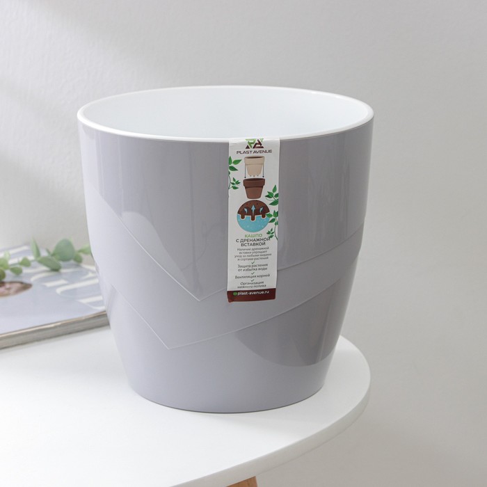 Кашпо для цветов со вставкой «Грация», 4.5 л, цвет серый 4 фото