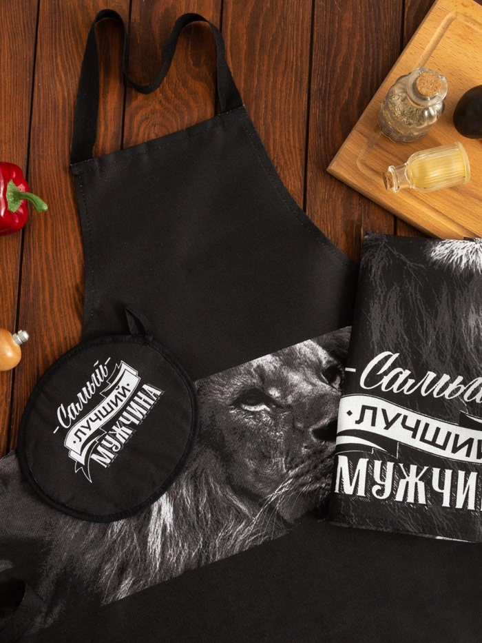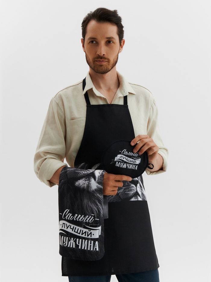 Кухонный набор «Самый лучший мужчина»: фартук 70×60 см, прихватка 20×20 см, полотенце 35×60 см 10 фото