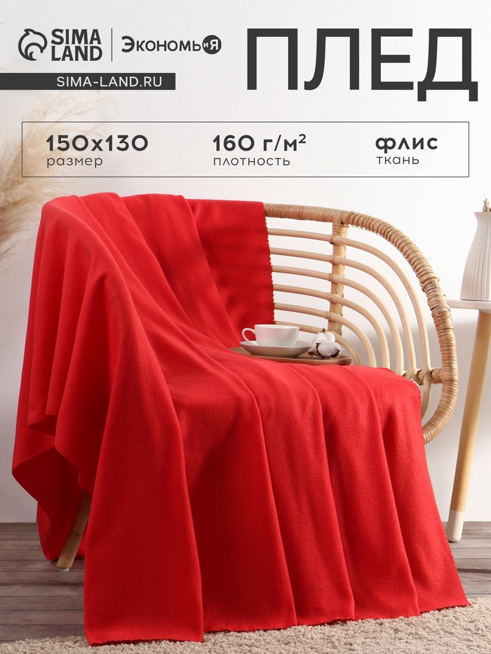 Плед флисовый «Экономь и Я», 150×130 см, 160 г/м², красный 6 фото