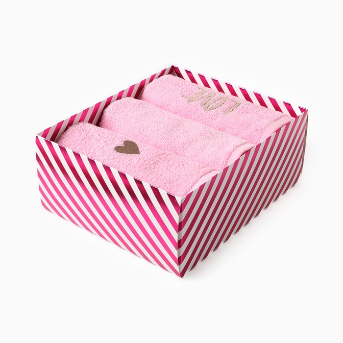 Полотенца махровые «Этель» LOVE, 3 шт., 30×60 см, хлопок 100%, розовые 10 фото