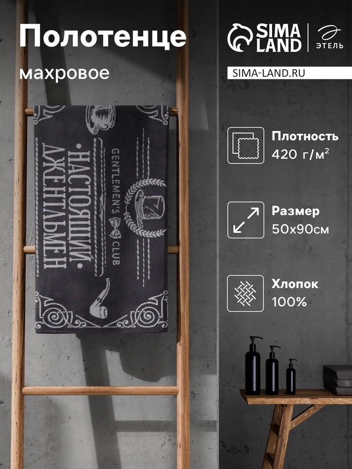 Полотенце махровое Этель «Джентльмен», 50×90 см, 420 г/м², серое 5 фото