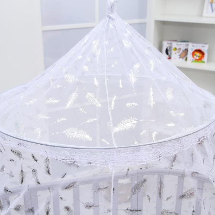 Балдахин для детской кроватки «Перья», без основания, р-р 165×500 см, белый 8 фото