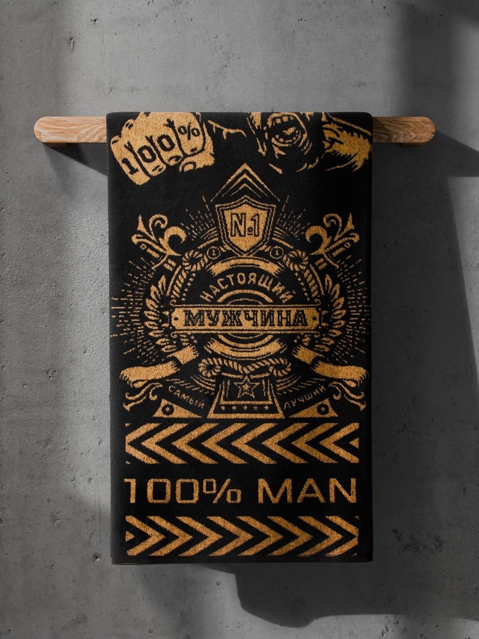 Полотенце махровое Этель 100% MAN, 50×90 см, 420 г/м², чёрно-золотое 6 фото