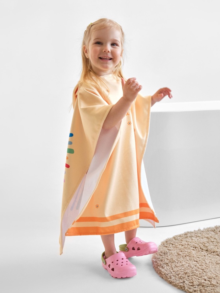 Халат вафельный детский Крошка Я Boho размер 30 (98-104 см), синий, 100% хлопок 290 г/м² 10 фото