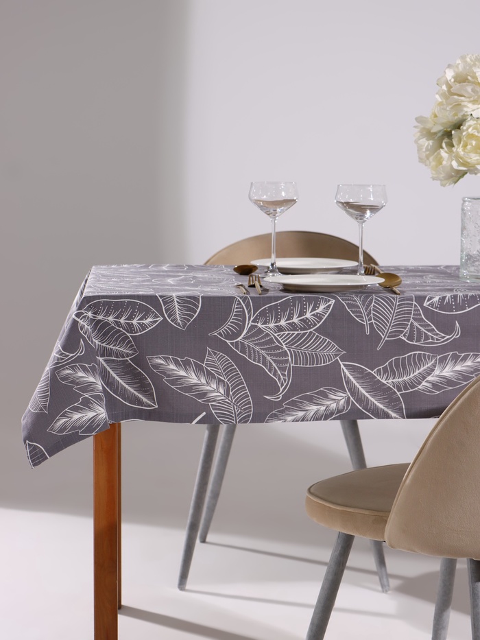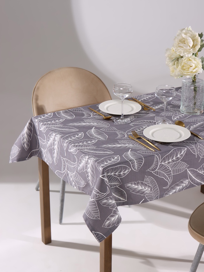 Скатерть «Этель» Home, 146×220 см, светло-серая, 100% хлопок, саржа 190 г/м² 6 фото