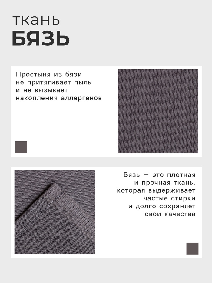 Простыня евро «Этель» Base Collection, 200×215 см, серая, хлопок 100%, бязь 6 фото
