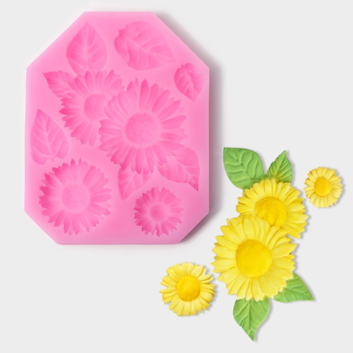 Молд для заливки «Подсолнухи», 6 ячеек, силикон, 11.5×9 см, розовый 4 фото