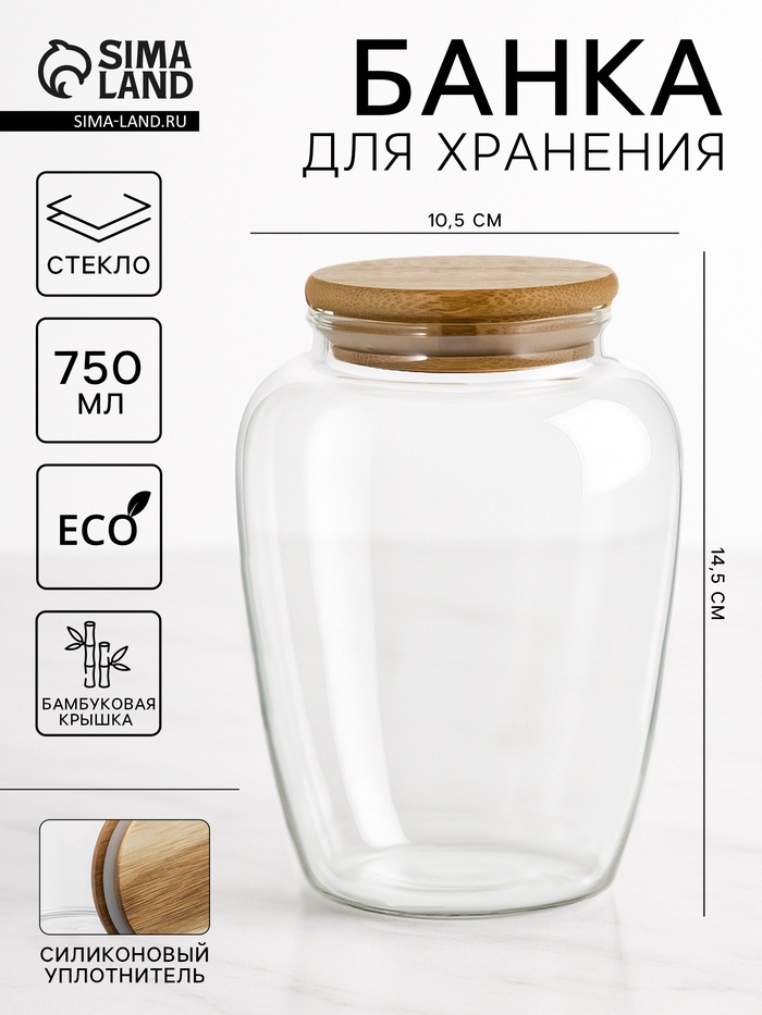 Банка для сыпучих Доляна «Блеск», 200 мл, 6×8.3 см, с пластиковой крышкой, стекло, прозрачная 4 фото