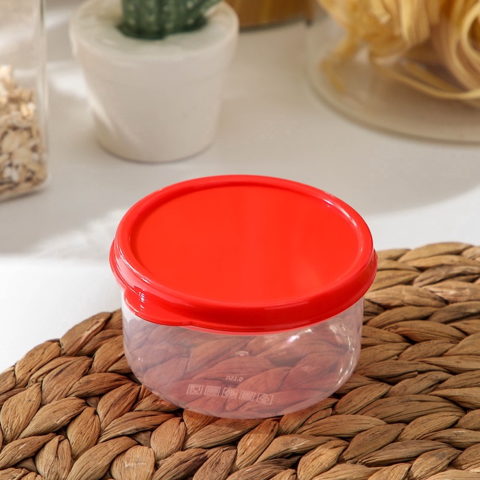 Контейнер для хранения еды Доляна, пищевой 1.2 л, пластик, прозрачный, крышка красная 6 фото