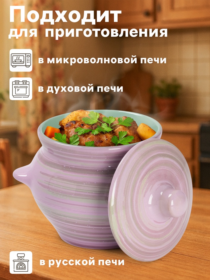 Горшочек для запекания Борисовская керамика «Лаванда», 500 мл, 10×10.5 см, сиреневый 7 фото