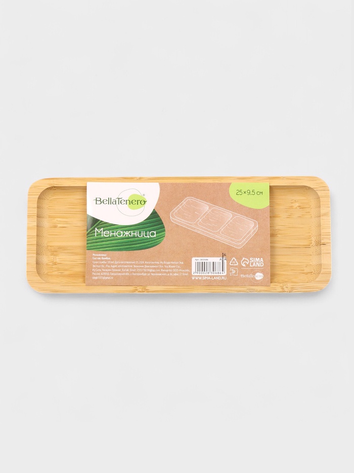 Менажница Доляна Striata, 4 секции, 33×9.5 см, бамбук, бежевая 6 фото