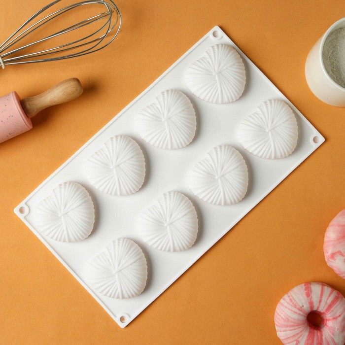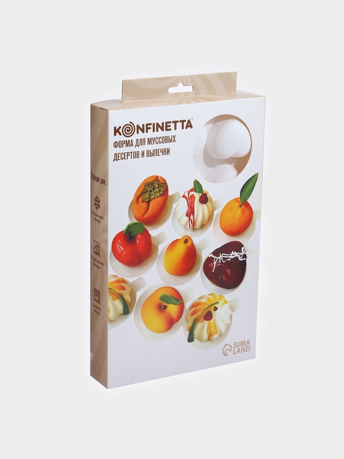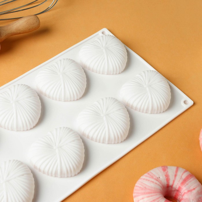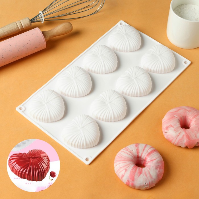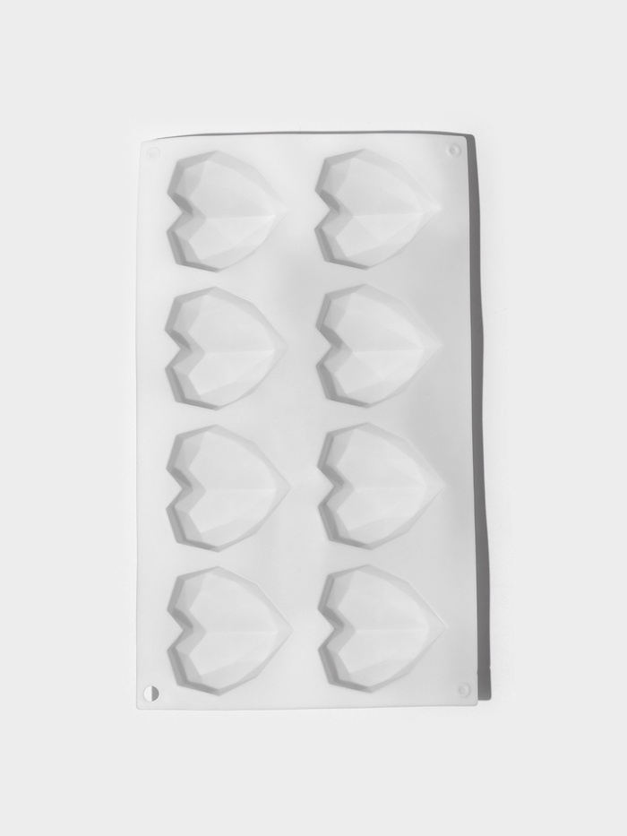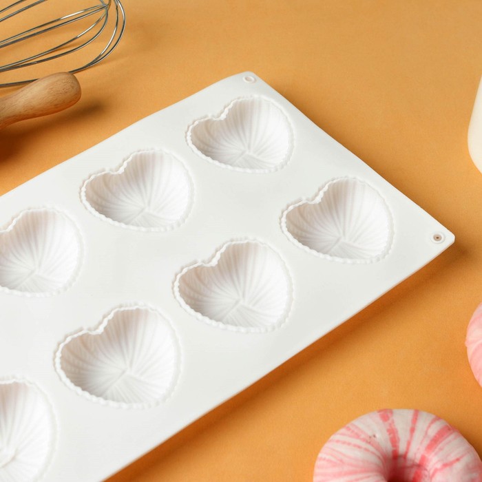 Форма для муссовых десертов и выпечки KONFINETTA «Сердце», силикон, 29×17×2 см, 8 ячеек, белая 10 фото