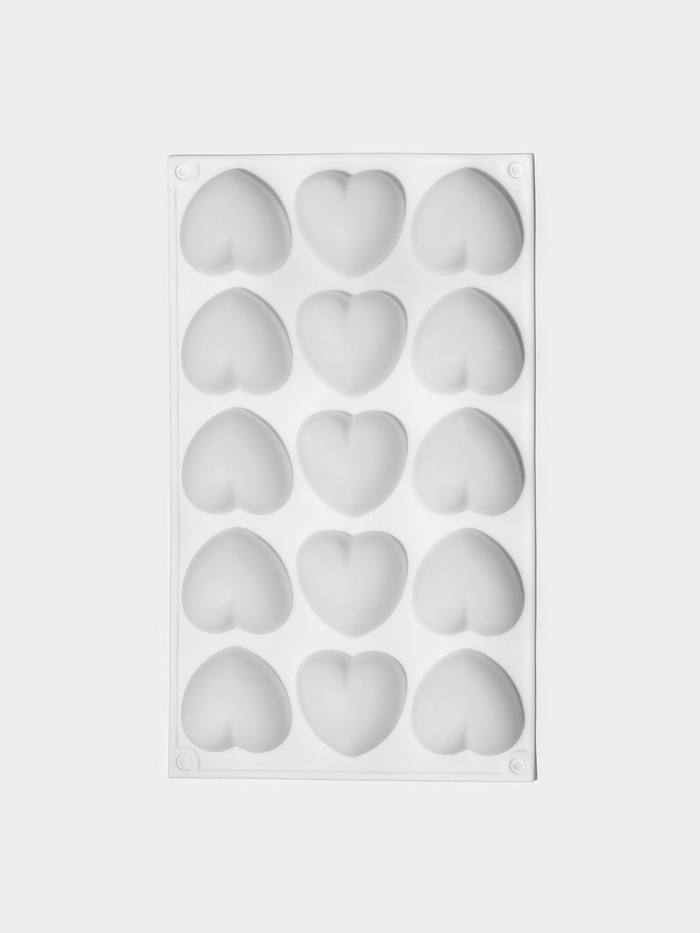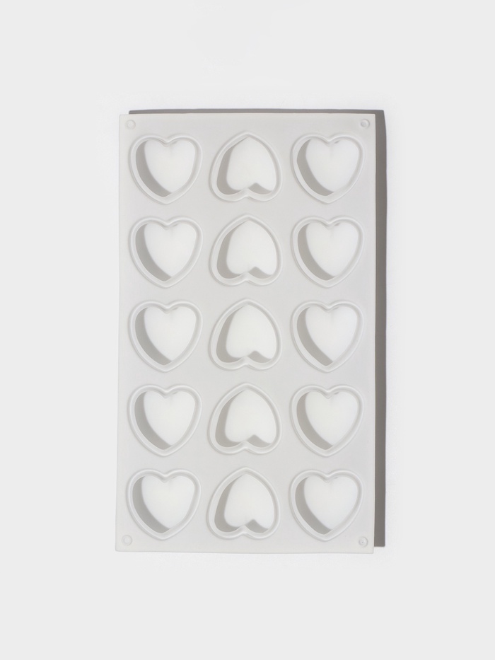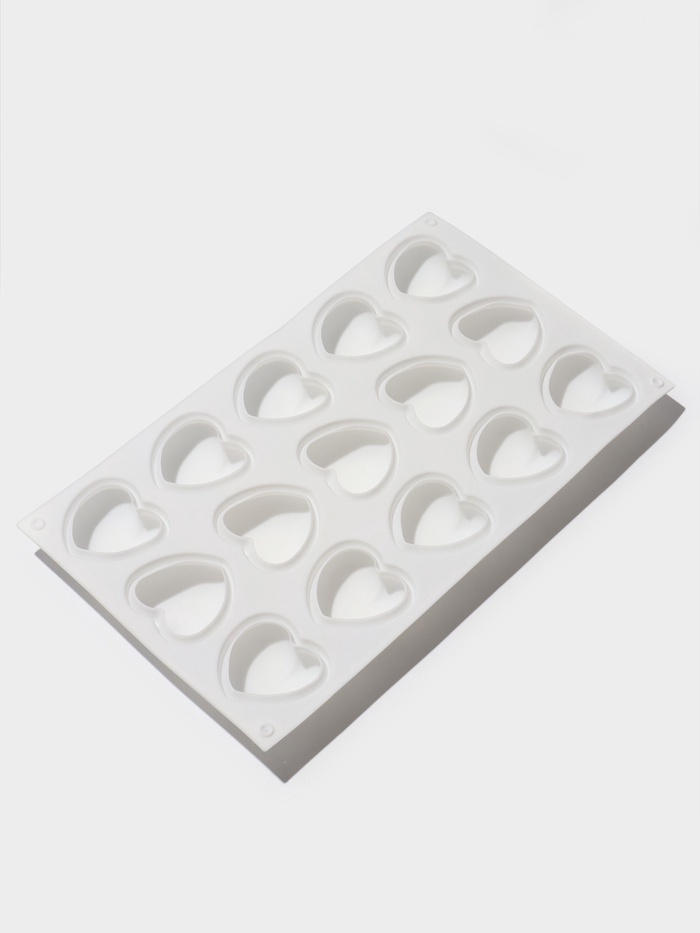 Форма для муссовых десертов и выпечки KONFINETTA «Сердца», 29.8×17.3×2.5 см, 15 ячеек (5×4.6 см), силикон, белая 10 фото