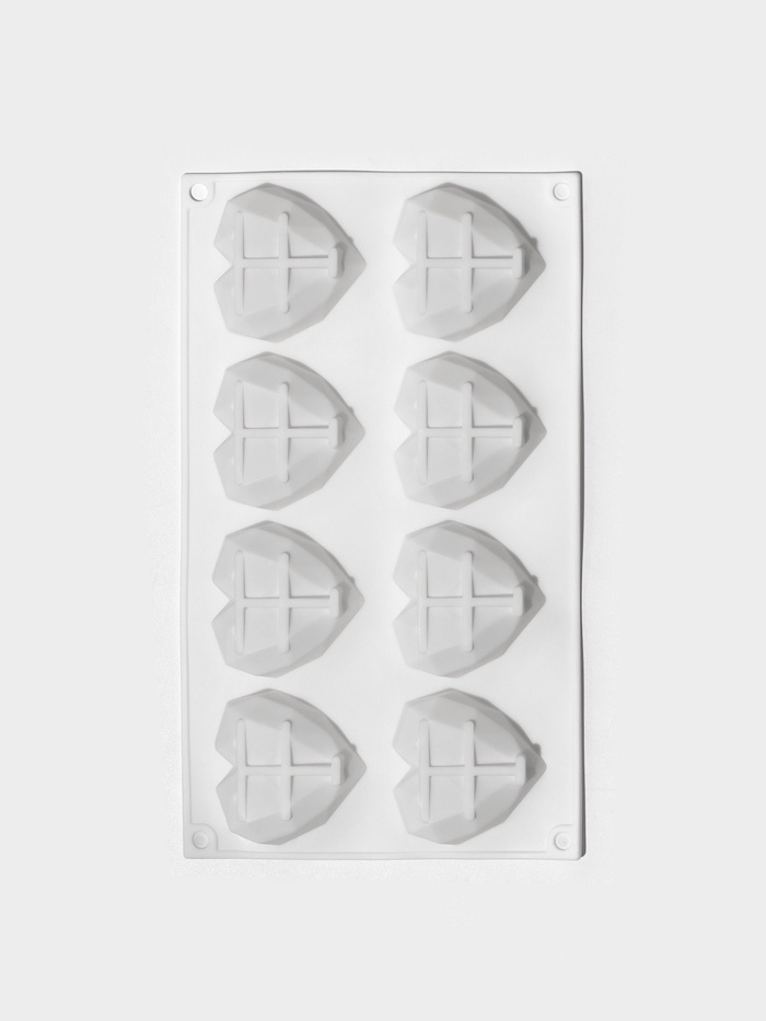 Форма для муссовых десертов и выпечки KONFINETTA «Вязаное сердце», силикон, 29.5×17×2 см, 8 ячеек (5.5×6.5×1.5 см), белая 7 фото