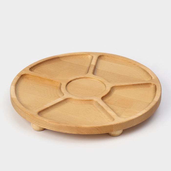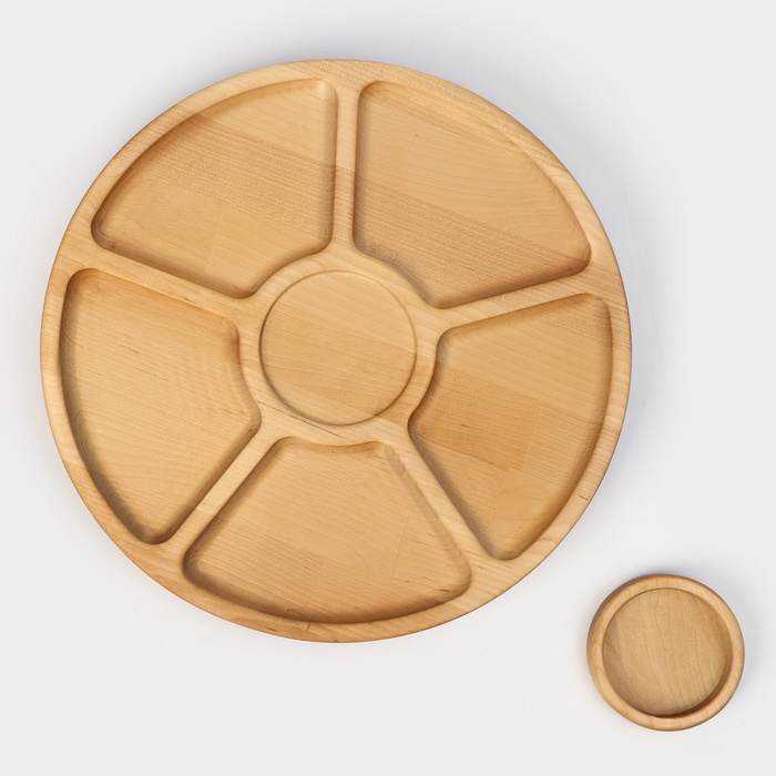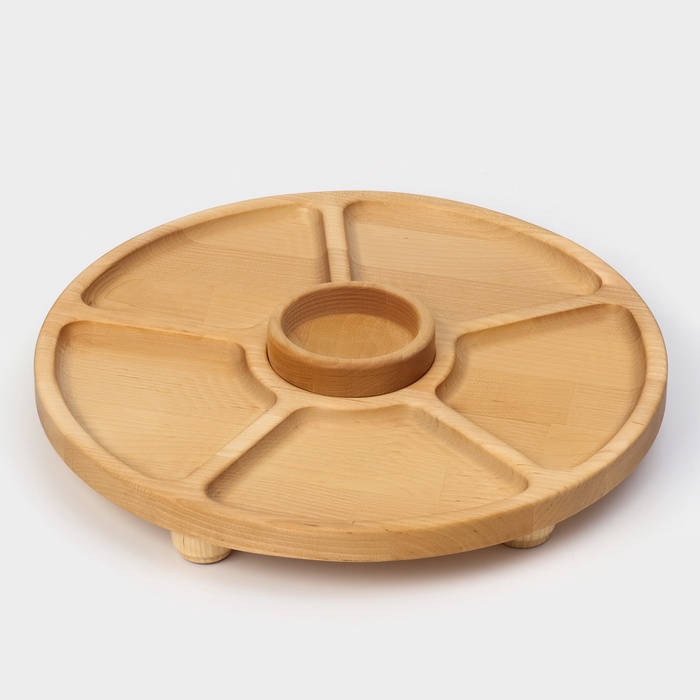 Менажница Adelica «Фортуна», 6 секций, на ножках с соусницей, d=30 см, 70 мл, дерево берёза 10 фото