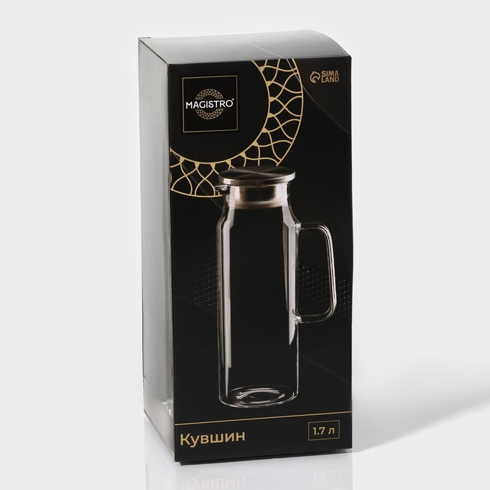 Кувшин для воды Magistro «Богема», 1.7 л, 10×27.5 см, с металлической крышкой, стекло, прозрачный, серебристая крышка 10 фото