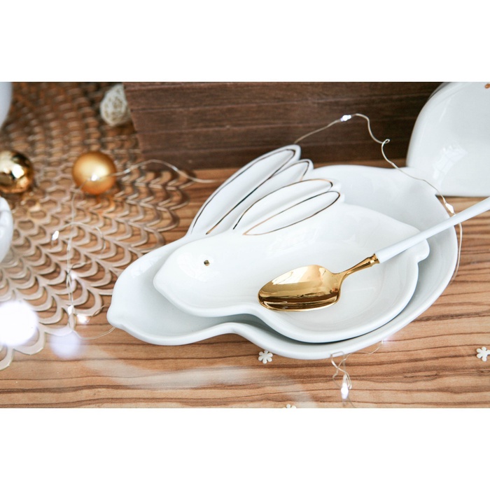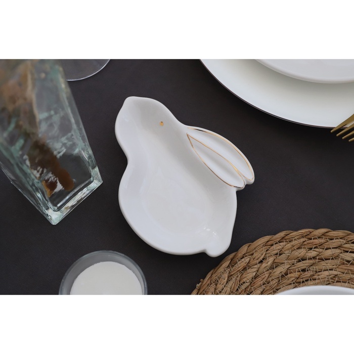 Блюдо Доляна «Зайка в золотом», 15.5×11×2.5 см, цвет белый 7 фото