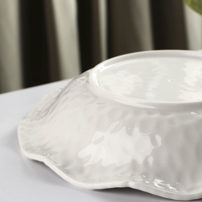 Блюдо Доляна «Зайка в золотом», 20.5×15.5×3.2 см, доломит, белое 8 фото