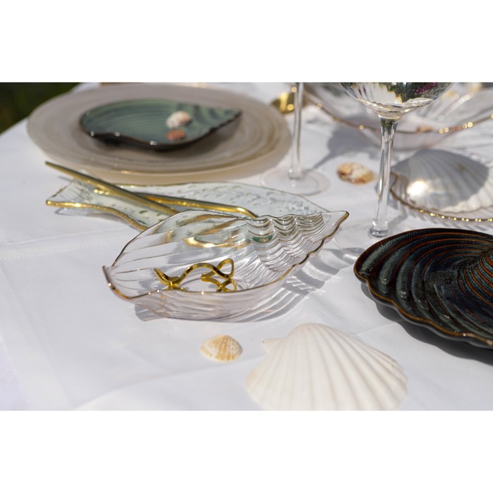 Блюдо сервировочное Magistro «Ракушка», 20×11 см, с золотой отводкой, стекло, прозрачное 10 фото