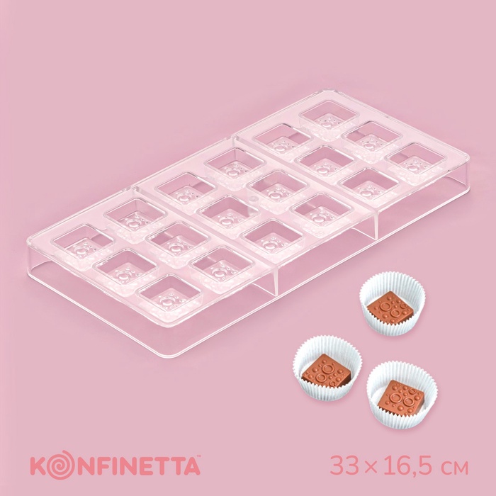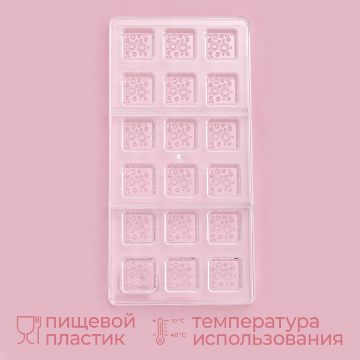 Форма для конфет и шоколада KONFINETTA «Пористый шоколад», 33×16.5×2.5 см, 18 ячеек 3×3×1 см, прозрачная 6 фото