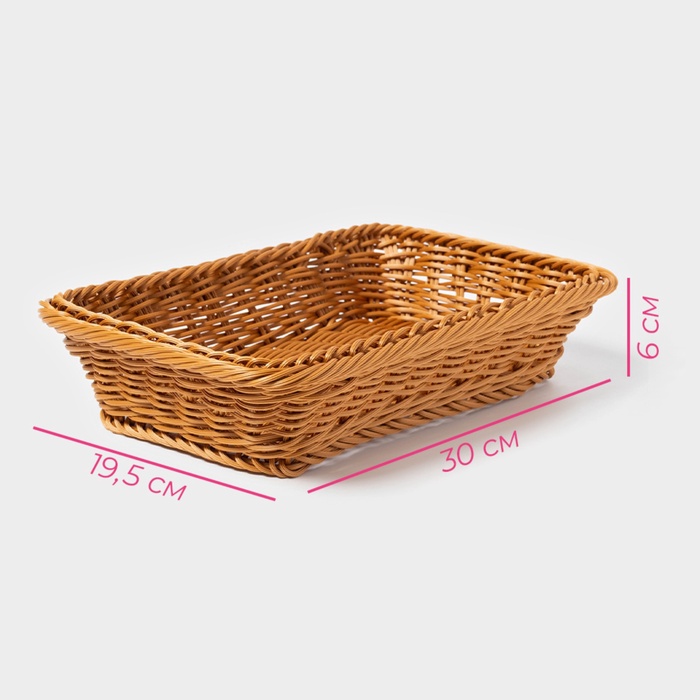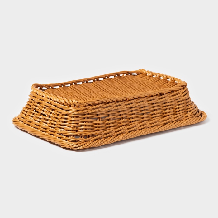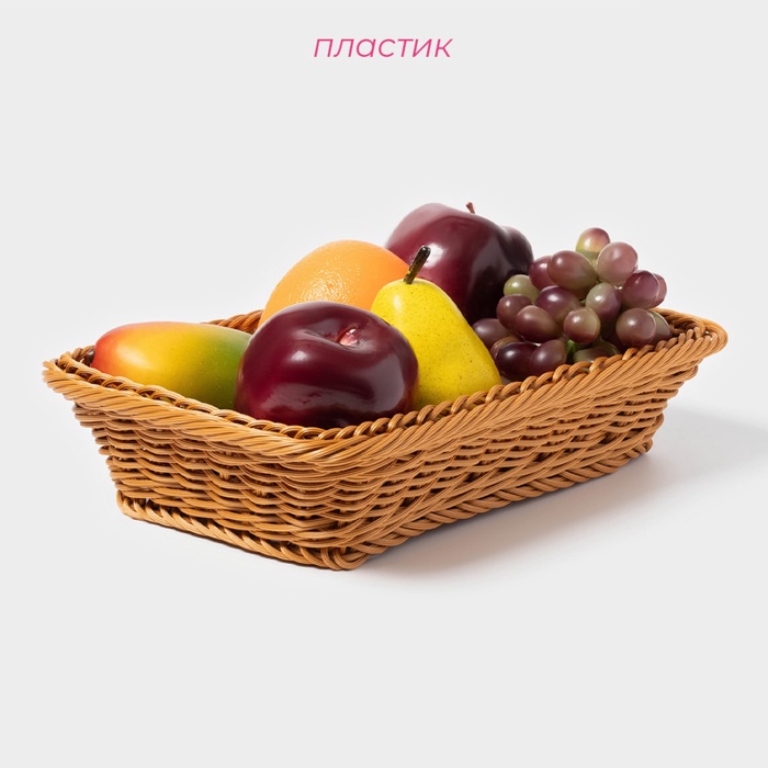 Корзинка для фруктов и хлеба Доляна «Плетёнка», 25×18×6.5 см, пластик, плетёная, коричневая 7 фото