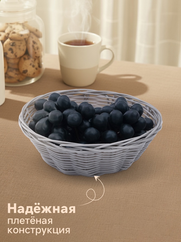 Корзинка для фруктов и хлеба Доляна «Плуг», 18×13×5 см, пластик, плетёная, серая 7 фото