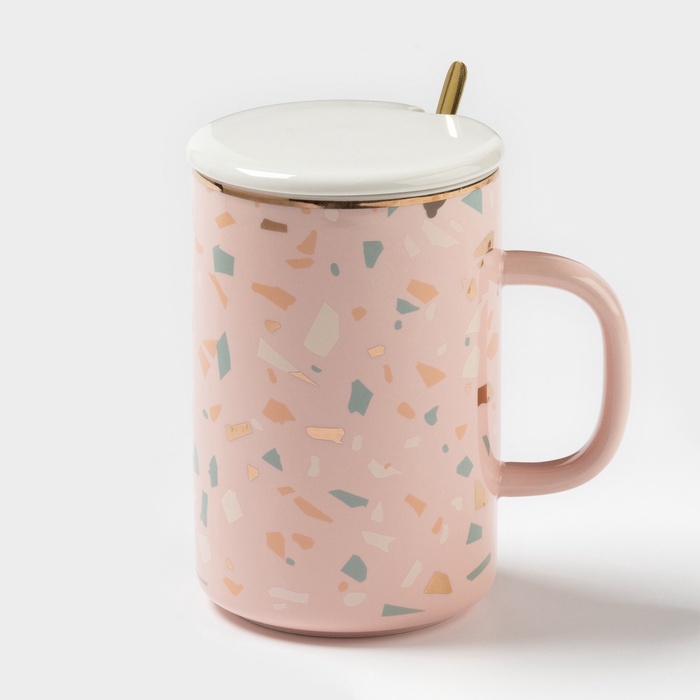 Кружка Доляна «Золотой фламинго», 450 мл, 10×7.5×13 см, с ручкой, крышкой и трубочкой, стекло, прозрачная 8 фото