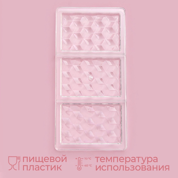 Форма для шоколада KONFINETTA «Плитка шоколада», 33×16.5×2.5 см, 3 ячейки 7.5×11.3 см, прозрачная 6 фото