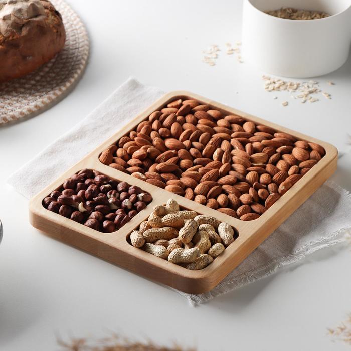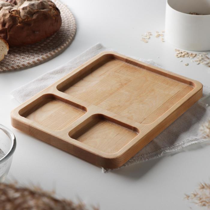 Менажница деревянная квадратная Доляна, 26×20.5×2 см, 3 секции, берёза 5 фото