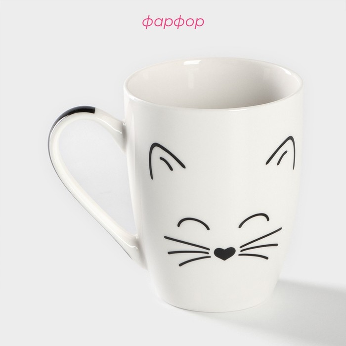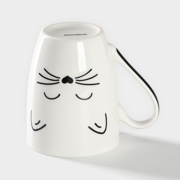 Кружка Доляна «Белый кот», 350 мл, фарфор, белая 5 фото
