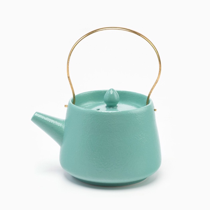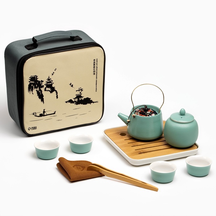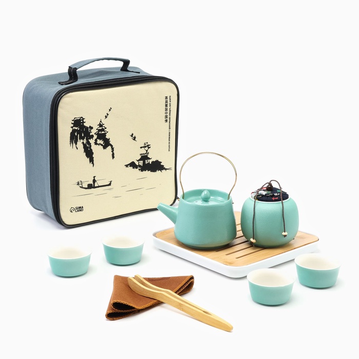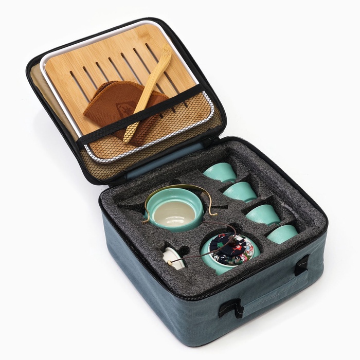Набор для чайной церемонии ДЖЕКИЧАЙ «Харбин», 10 предметов, на 4 персоны, чашка 40 мл, чайник 200 мл, керамика, бирюзовый 10 фото