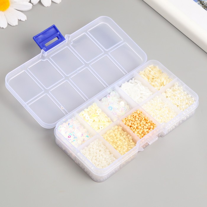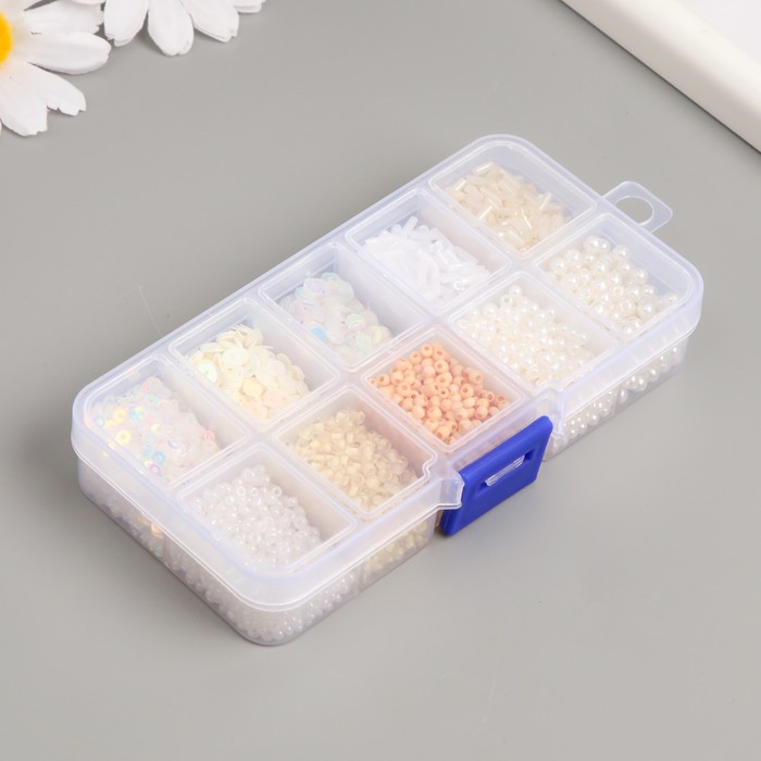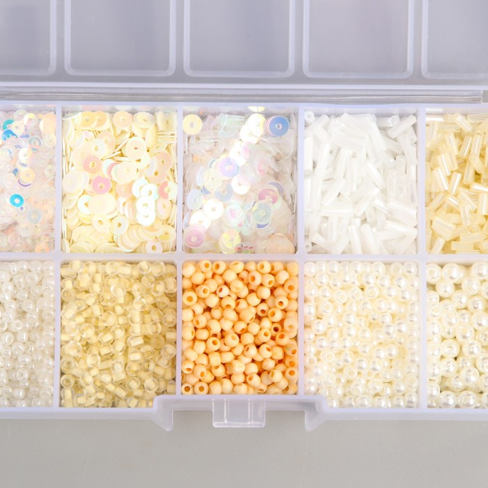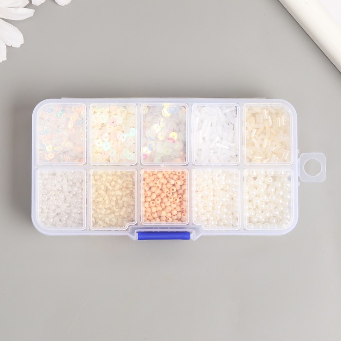 Бисер стекло 8/0, 12/0 в шкатулке «Телесный», бусины, стеклярус и пайетки, 13×6.5×2.3 см 4 фото