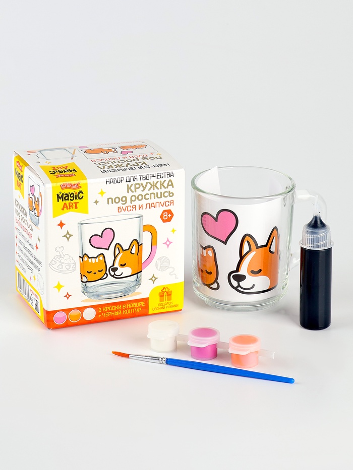 Набор для творчества. Кружка под роспись «Буся и Лапуся» 6 фото