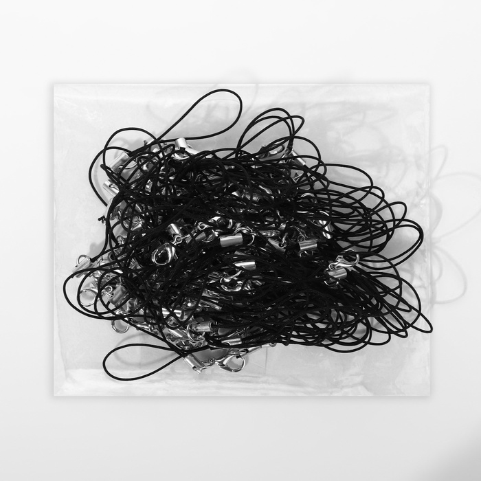 Основа для брелока на нитке с карабином, 6 см, набор 100 шт., чёрно-серебряный 3 фото