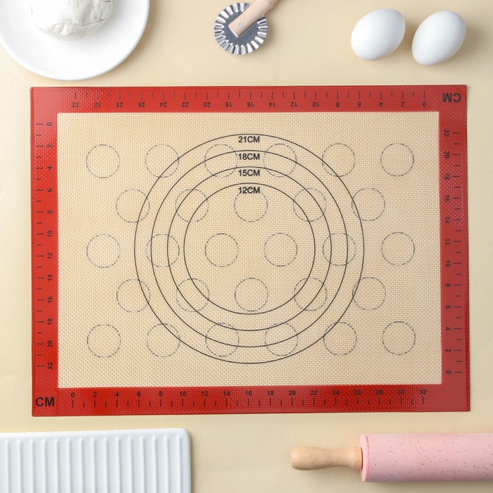 Коврик для выпечки и раскатки теста с разметкой «Пекарь», армированный, двусторонний, силикон, 30×40 см, бежевый 4 фото