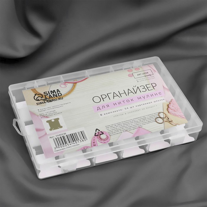 Органайзер для ниток мулине с бобинами, со съёмными ячейками, 18 отделений, 27×18×4.5 см, цвет прозрачный 5 фото