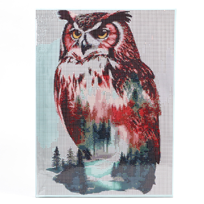 Алмазная мозаика с полным заполнением на холсте с подрамником «Филин», 30×40 см 7 фото