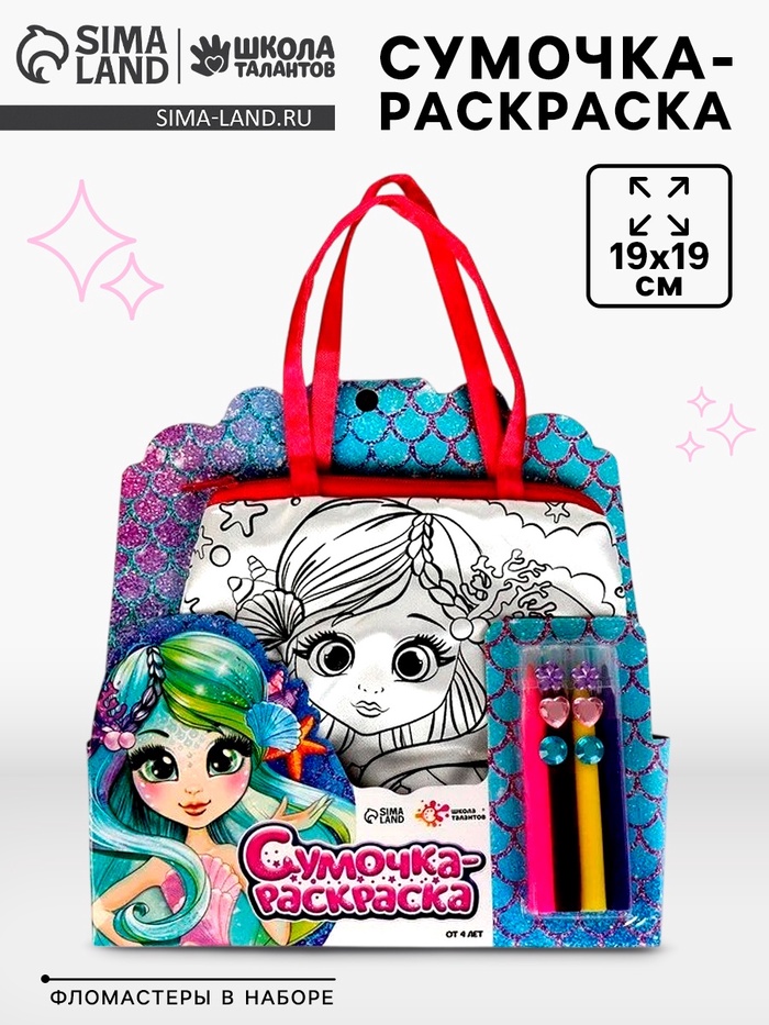 Сумка-раскраска «Русалочка», с фломастерами 3 фото