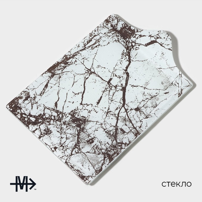 Блюдо стеклянное сервировочное Magistro «Мрамор», 26.5×17.5×2 см, цвет белый 8 фото