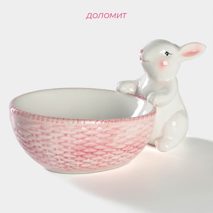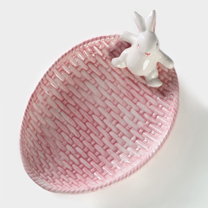 Блюдо Доляна «Зайка в золотом», 20.5×15.5×3.2 см, доломит, белое 8 фото