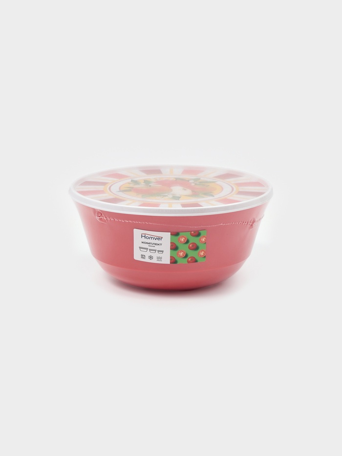 Набор мисок с крышкой Idiland «Гранат», 3 шт.: 1 л, 2 л, 3 л, пластик, красный 10 фото