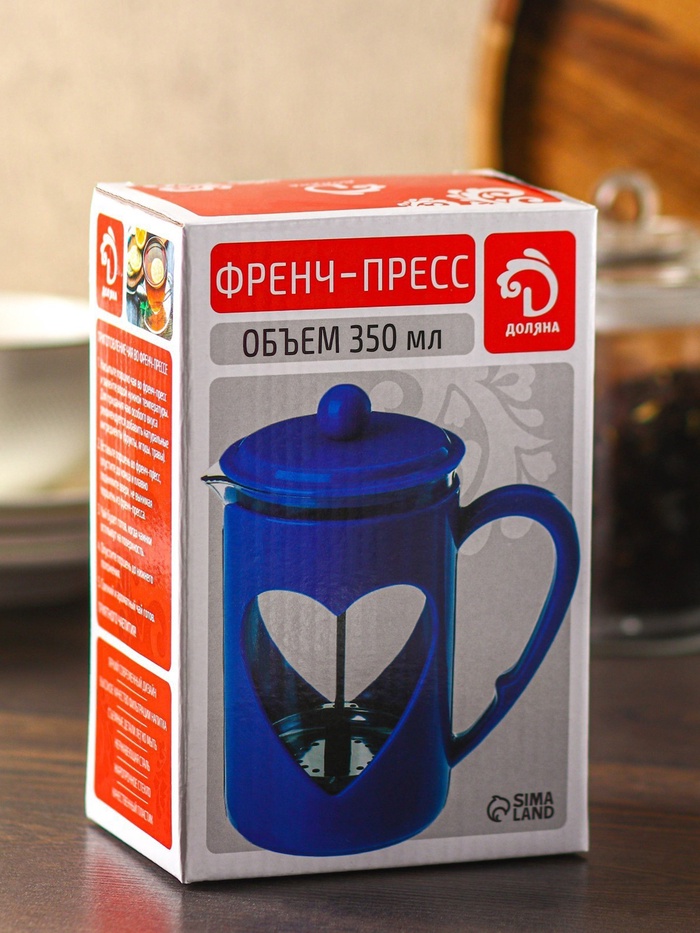 Заварочный чайник френч-пресс Доляна «Классика», 350 мл, стекло, красный 7 фото