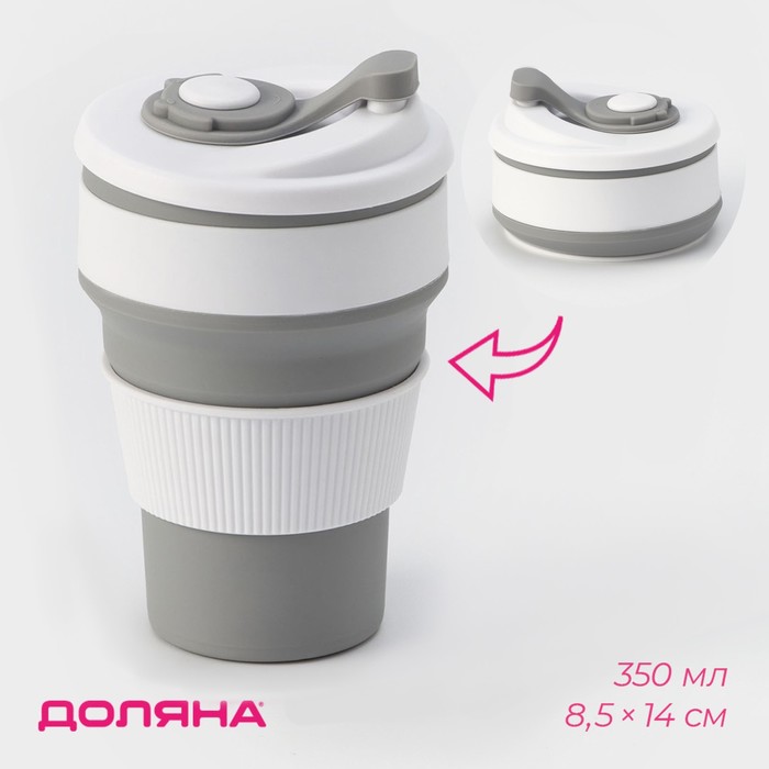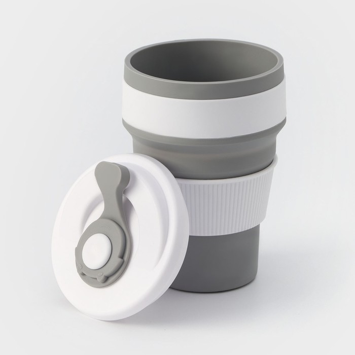 Стакан складной с крышкой Доляна «С собой», 350 мл, 8.5×14 см, серый 8 фото