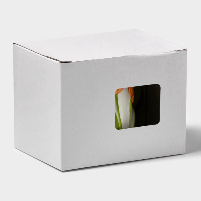 Кружка «Тюльпан», 430 мл, оранжевый цветок, керамика, белая 5 фото