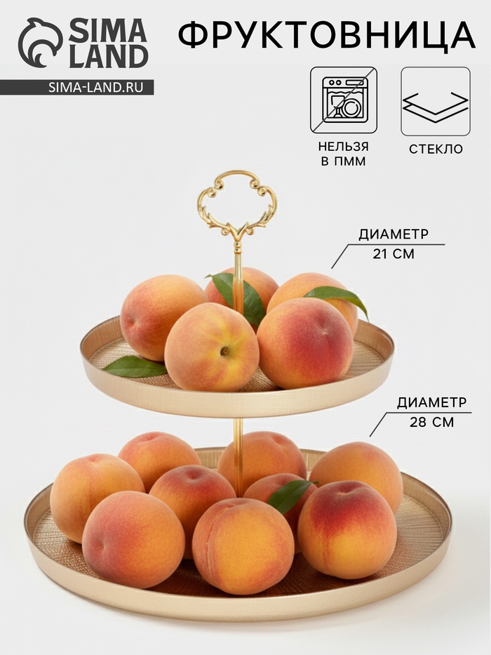 Этажерка для фруктов и десертов «Кувшинка», 2 яруса, d=21/28 см, стекло, золотая 9 фото