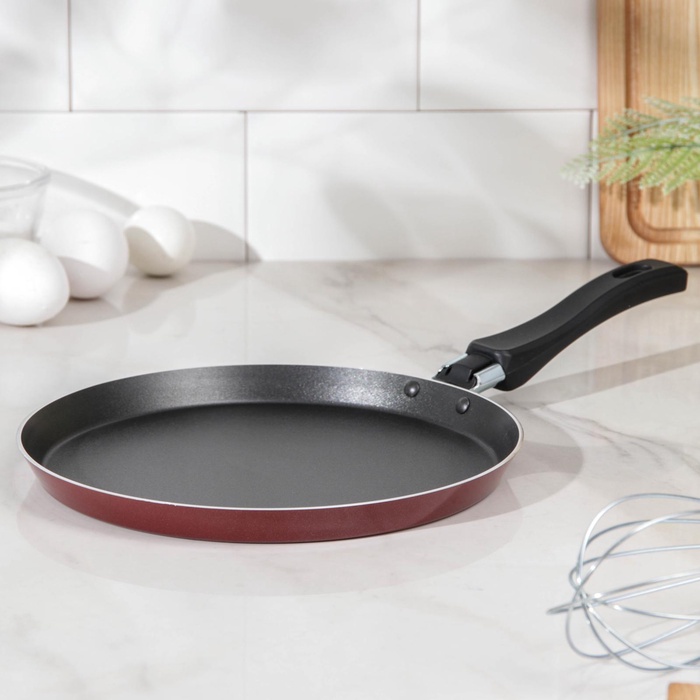 Сковорода блинная «Эксперт», d=22 см, пластиковая ручка, антипригарное покрытие, алюминий, бордовая 10 фото