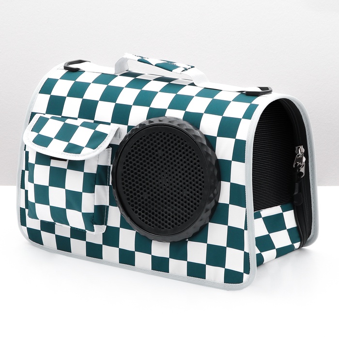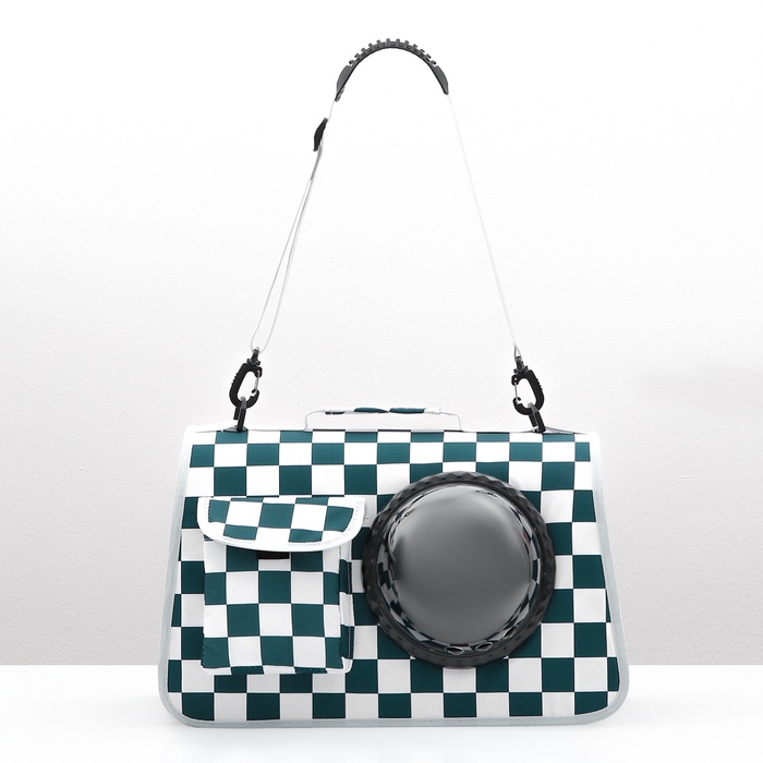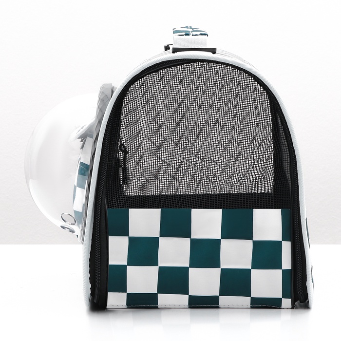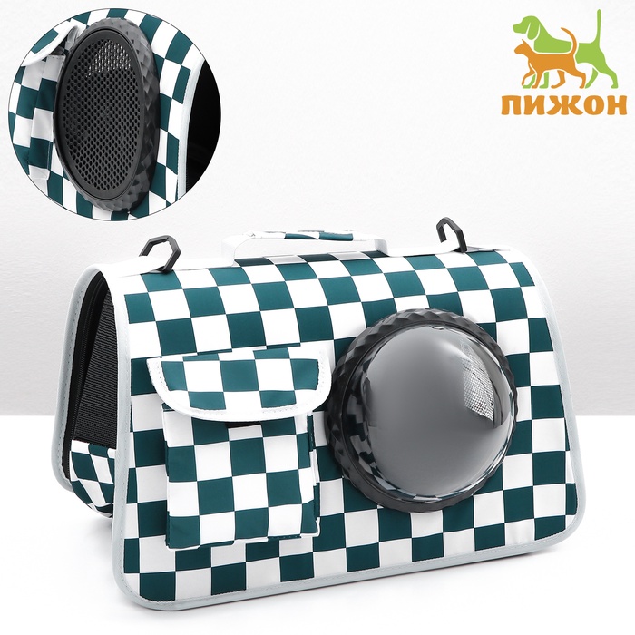 Сумка - переноска, 43×24×28 см, с органайзером и иллюминатором, белая, зелёная 10 фото