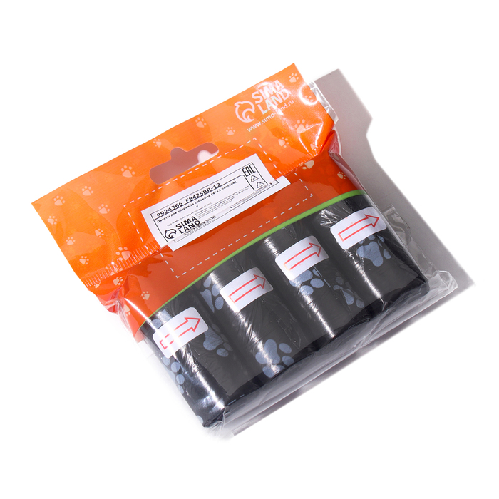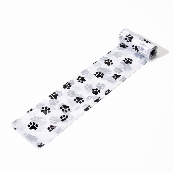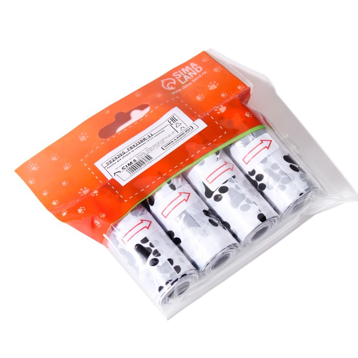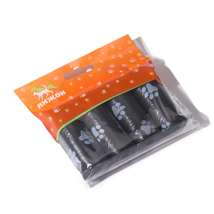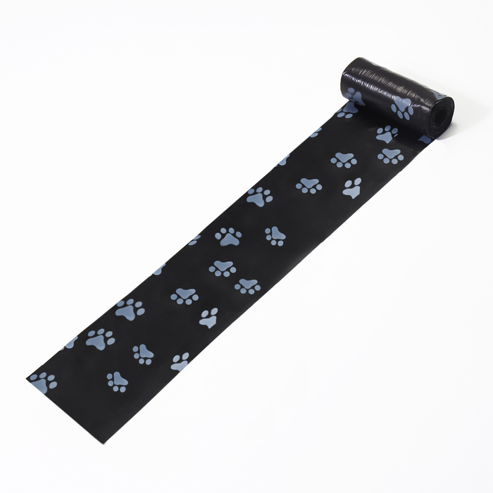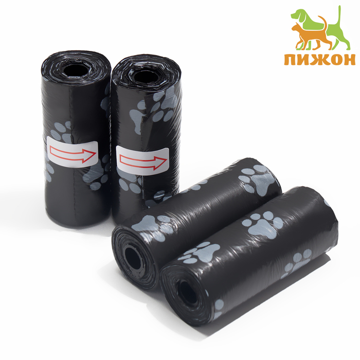 Пакеты для уборки за собаками «Лапки», 4 рулона по 15 пакетов, 29×21 см, с печатью, чёрные 4 фото