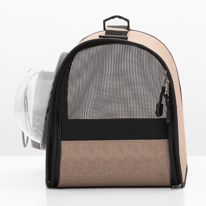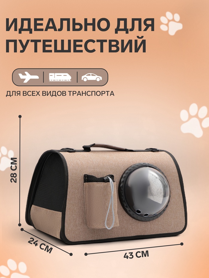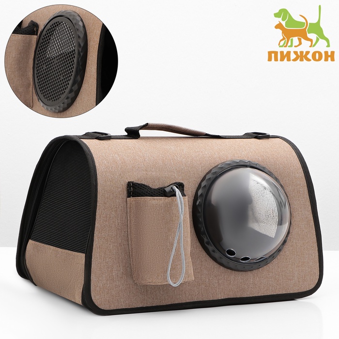 Сумка - переноска, 43×24×28 см, с органайзером и иллюминатором, коричневая 10 фото