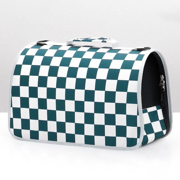 Сумка - переноска, размер S, 37×20×24 см, каркасная, со шторкой, клетчатая 10 фото
